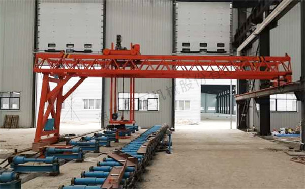 2、行走航架通過行走電機(jī)驅(qū)動減速機(jī)帶動鋼軌輪旋轉(zhuǎn),該電機(jī)帶剎車,可在任意位置剎車并停止行走。