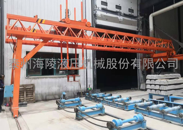 我公司設(shè)計(jì)制造的碼垛機(jī)由行走航架、升降裝置、自動夾緊定位裝置、減速機(jī)、電控系統(tǒng)等組成。設(shè)備整機(jī)為鋼結(jié)構(gòu)件。行走航架通過行走電機(jī)驅(qū)動減速機(jī)帶動鋼軌輪旋轉(zhuǎn),該電機(jī)帶剎車,可在任意位置剎車并停止行走。